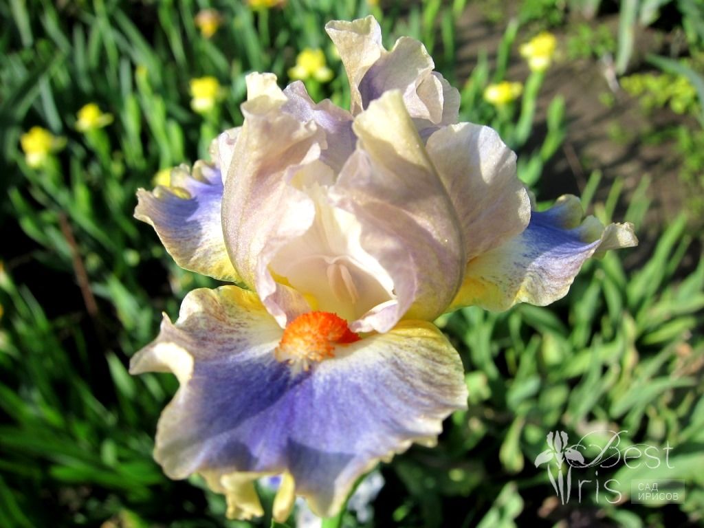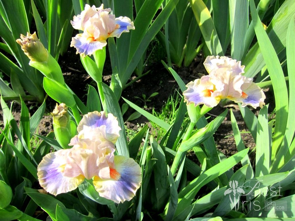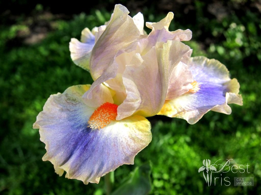 Описание:Black’17, ML, 28, HM’19, AM’21. Уникальной расцветки ирис: салатово-кремовые стандарты и серебристо-лавандовые фолы со светлым пятном под ярко-мандариновыми бородками.