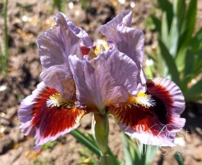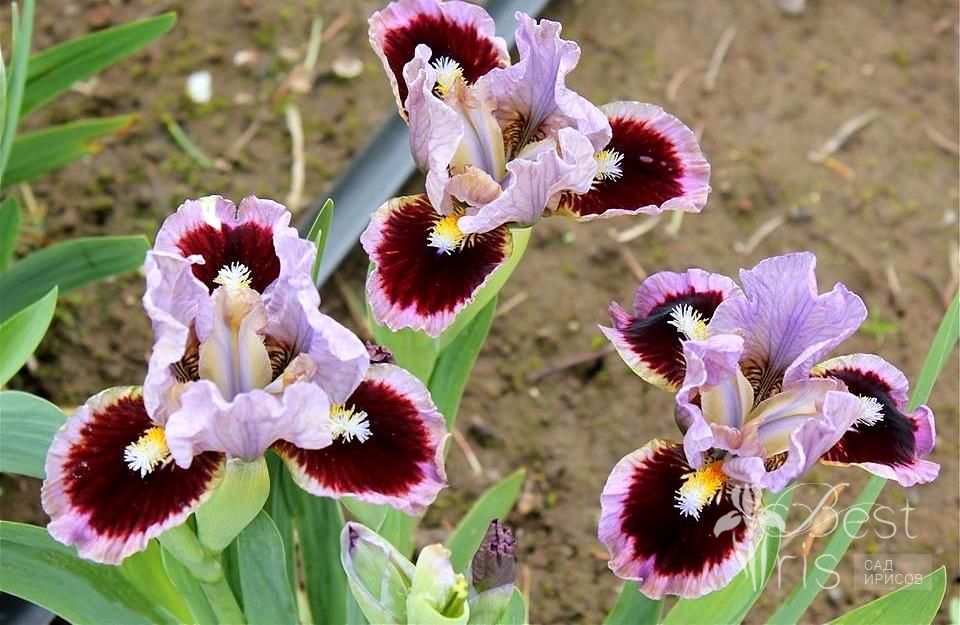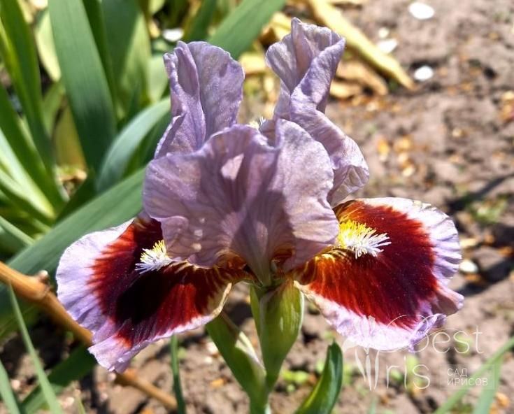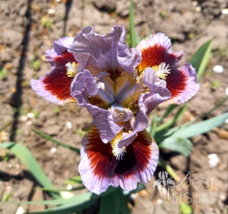 Описание:Black’13, EM, 33. Светло-сиреневые стандарты. На сиреневых фолах крупное тёмно-гранатовое пятно. Белые штрихи вокруг жёлтых с голубым кончиком бородок. Лёгкий мускусный аромат. Популярный!