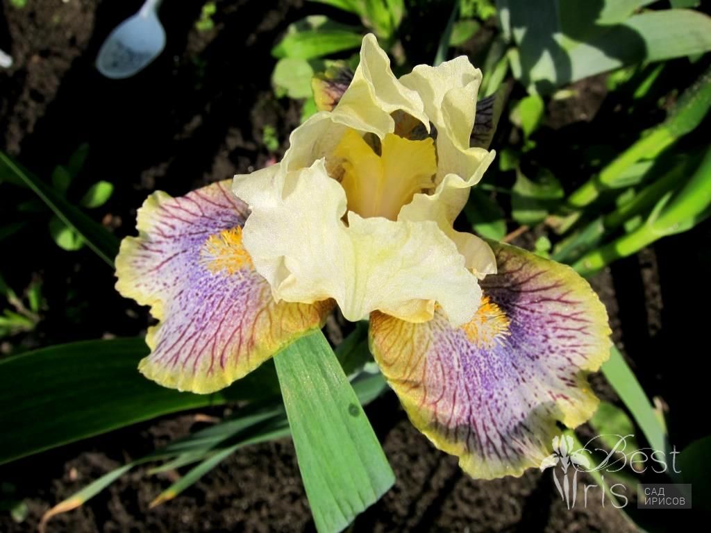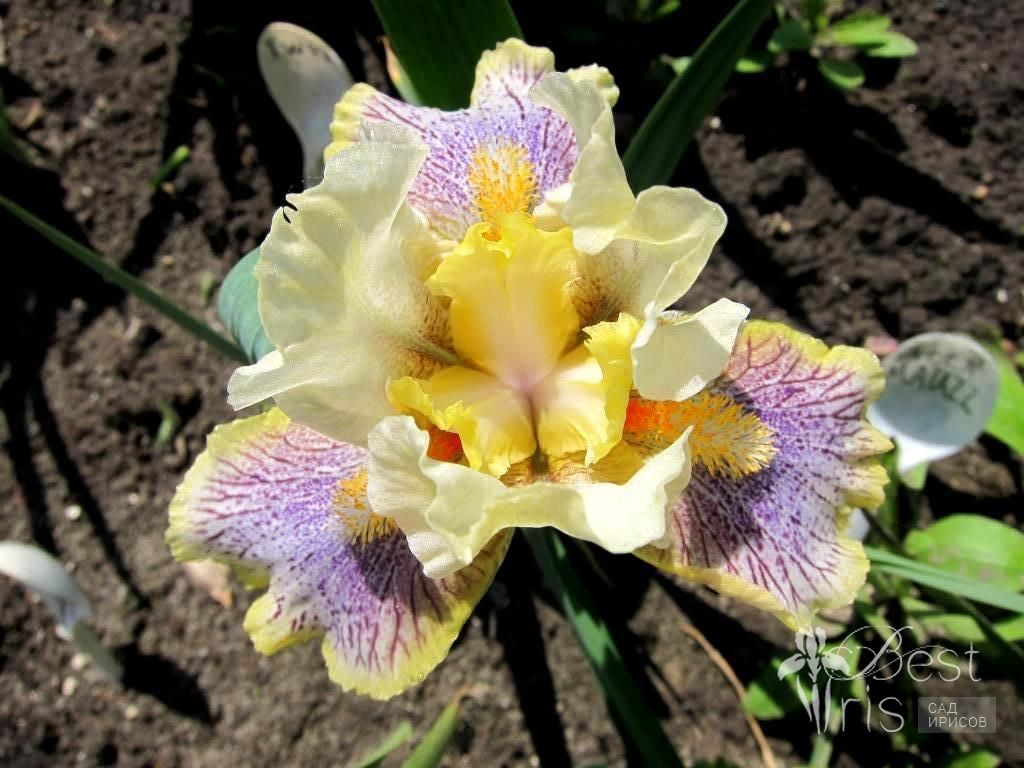 Описание:Johnson’16, E, 25. Молочно-кремовые стандарты. Бледно-жёлтые фолы, испещрённые сине-фиолетовыми прожилками и точками. Оранжево-белые бородки. Уникальная расцветка!