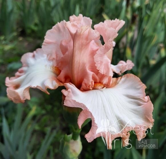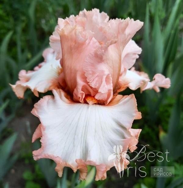 Описание:Blyth’16, ML, 94. "Будущая невеста". Мягкие кораллово-лососево-персиковые стандарты. Белые фолы с узкой окантовкой цвета стандартов. Яркие мандариновые бородки с белым кончиком. Супергофрированный! Изумительно нежный!