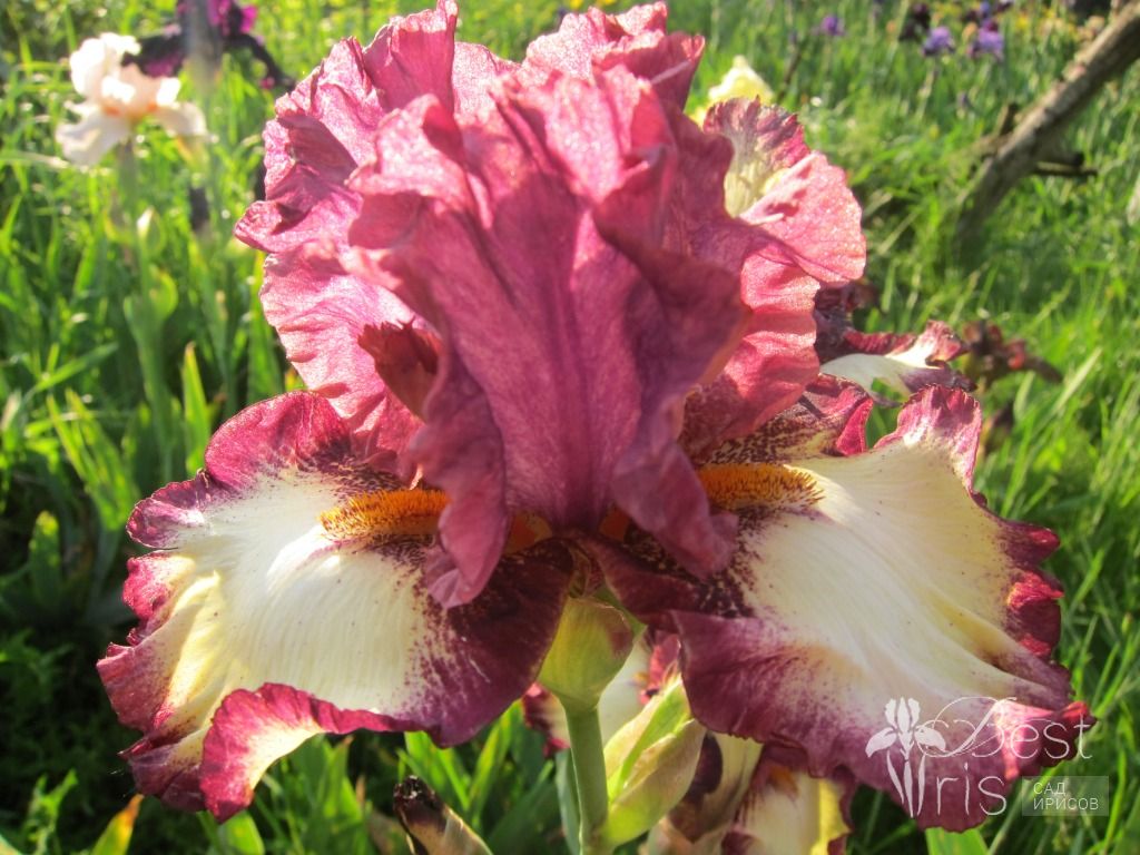 Описание:Schreiner’98, EM, 97, HM’00. Сиренево-фиолетовые стандарты, кремово-желтые фолы с узорчастыми краями цвета стандартов. Бородки - ярко оранжевые.