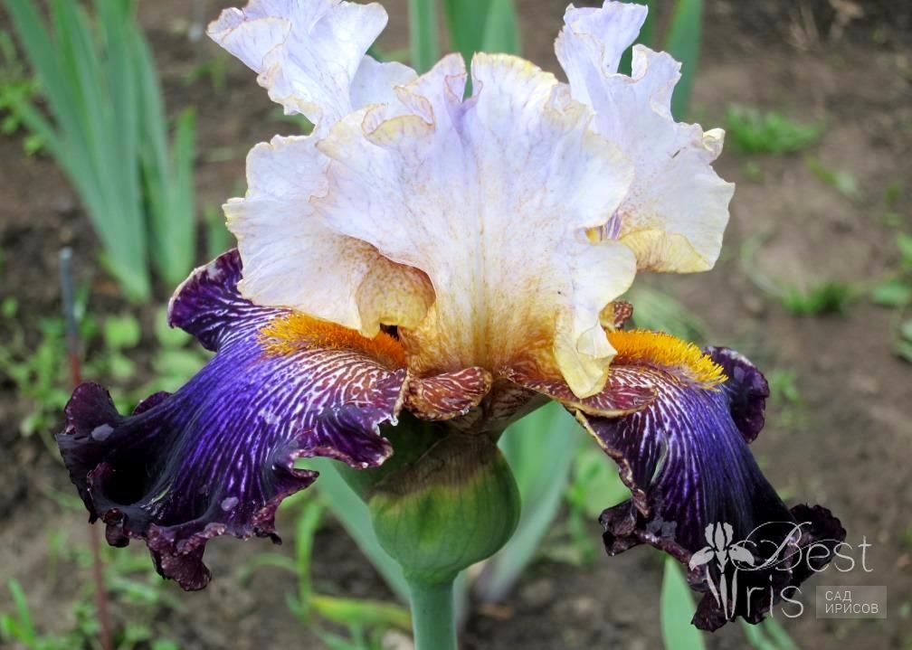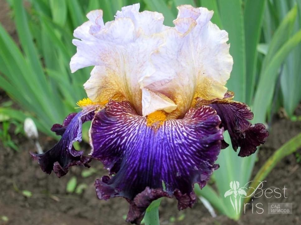 Описание:Black’10, М-VL, 94. Серо-голубые стандарты с тёмно-фиолетовыми венами и золотистым напылением у основания. Фиолетово-чёрные фолы с белыми прожилками вокруг больших ярко-золотых бородок. Выраженный сладкий аромат!