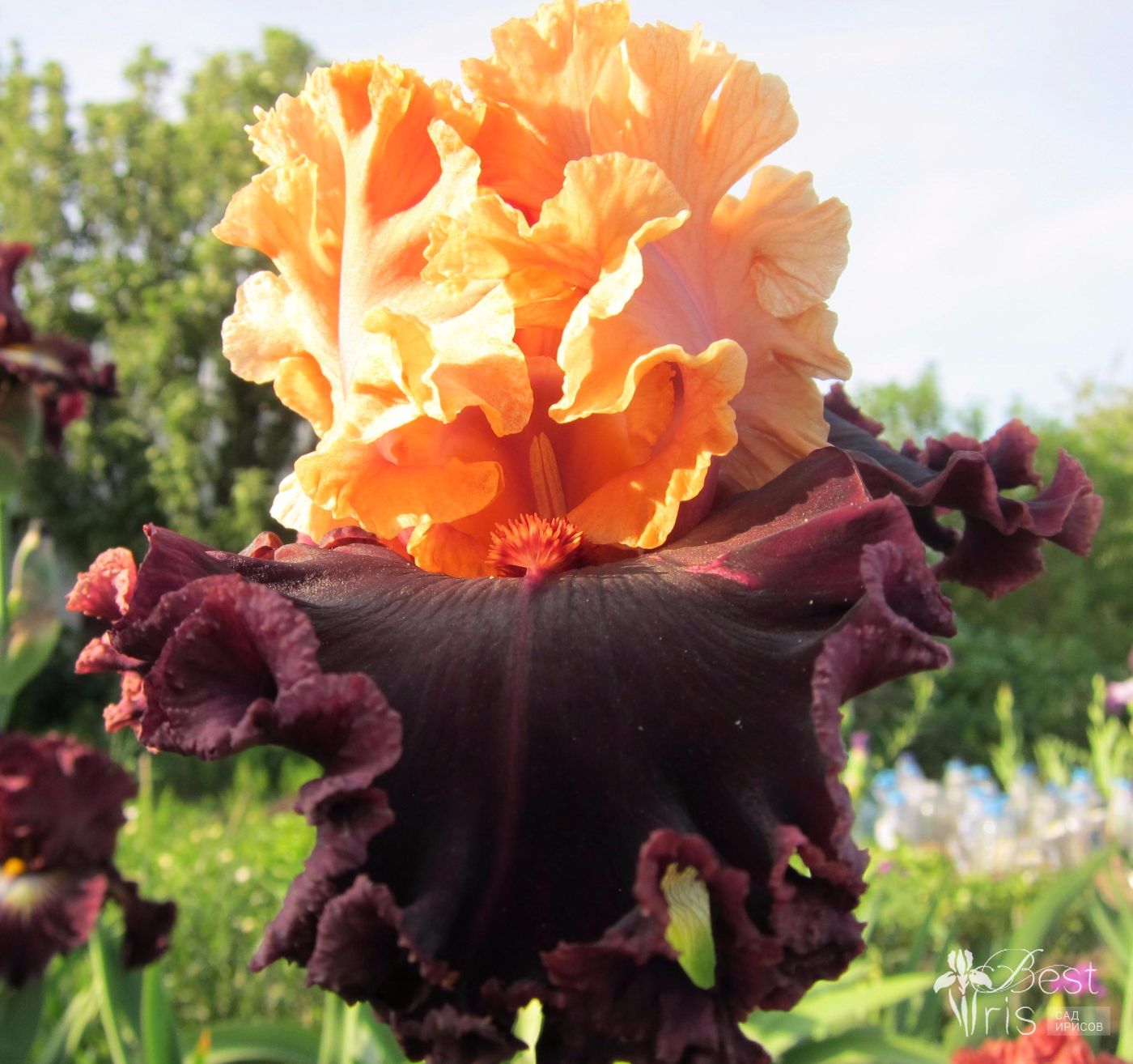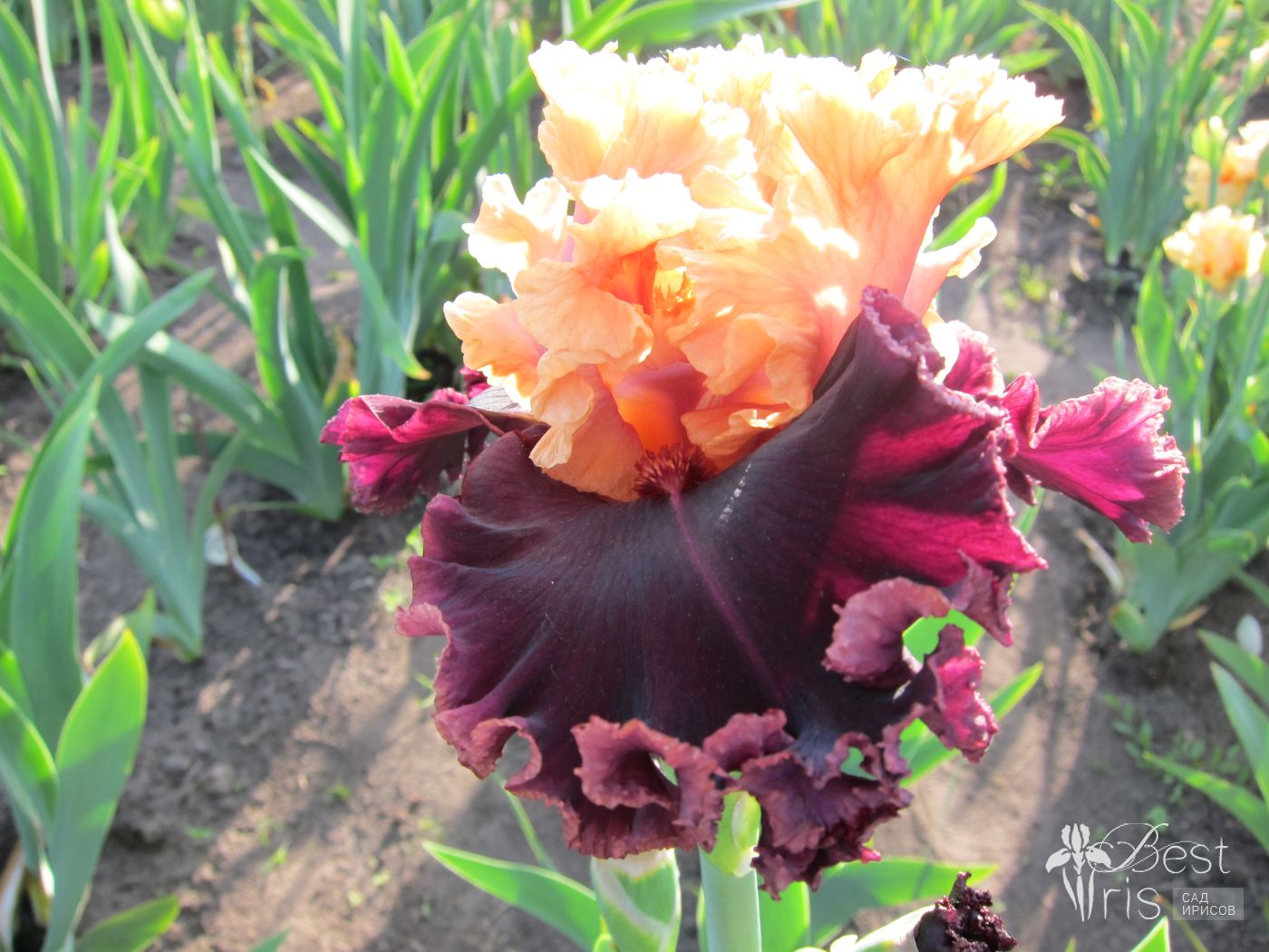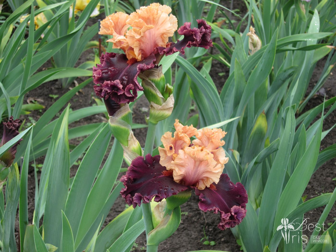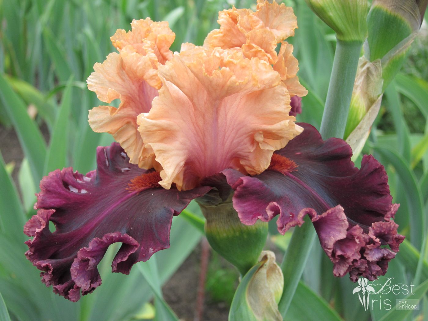 Описание:Johnson’11, ЕM, 91, HM’13, AM’16. Торонто, ирис, как выразился автор, "такой же красочный и шумный, как город". Тёплые персиковые стандарты, с розоватым оттенком у основания. Бархатистые тёмно-бордовые фолы украшены лёгкими бордово-розовыми оборками. Бородки тёмно-оранжевые. Очень эффектный ирис!