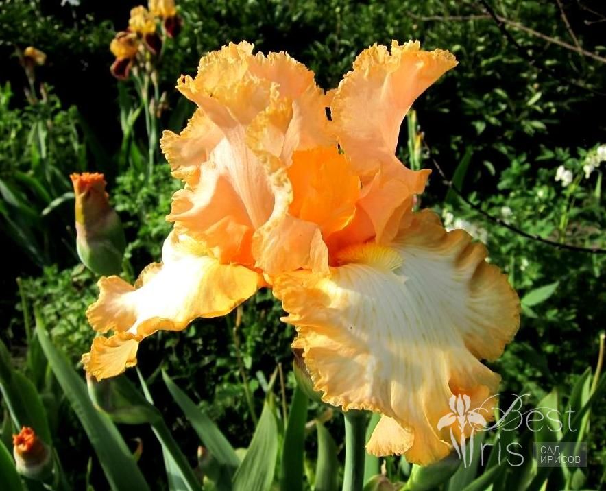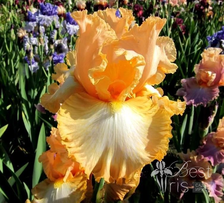 Описание:Maryott’99, M, 91, HM’01. Мелко гофрированный оранжево-розовый, с большим белым пятном на фолах. Один из фаворитов в нашем саду!