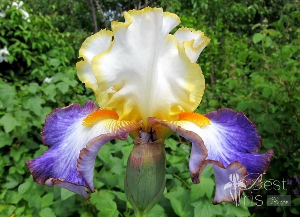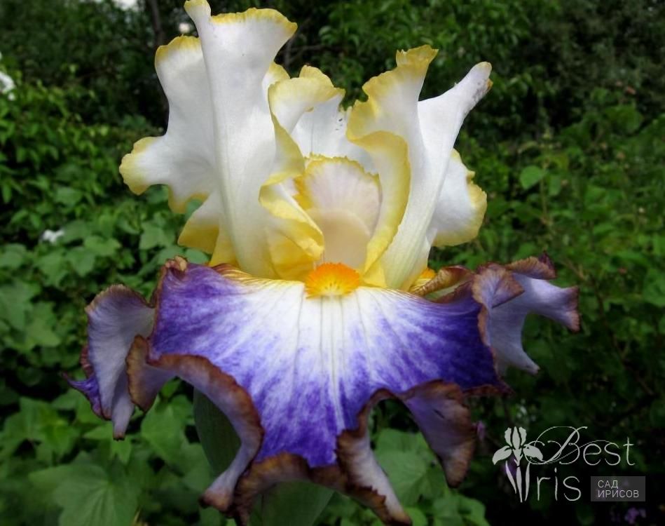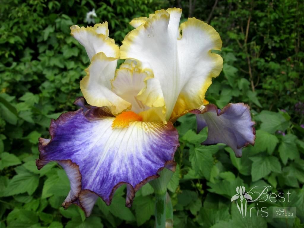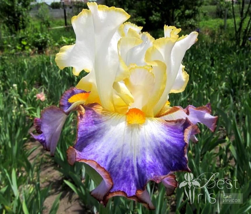 Описание:Blyth’16, EM, 86. (Случайный дизайн). Кремово-белые с лимонной окантовкой стандарты. Белые фолы с широкой лавандовой полосой. Небольшие коричневатые плечи у основания ярких мандариновых бородок и такого же цвета кант по краю фолов. Необычное сочетание цвета и хорошее ветвление создают незабываемую картинку в саду!