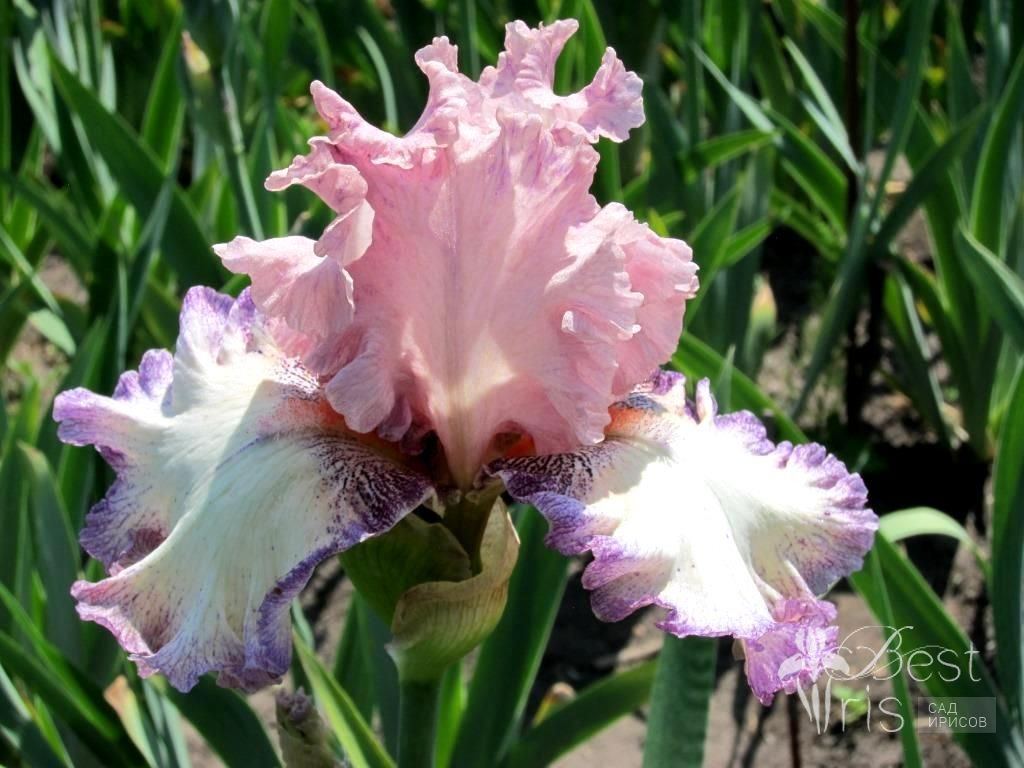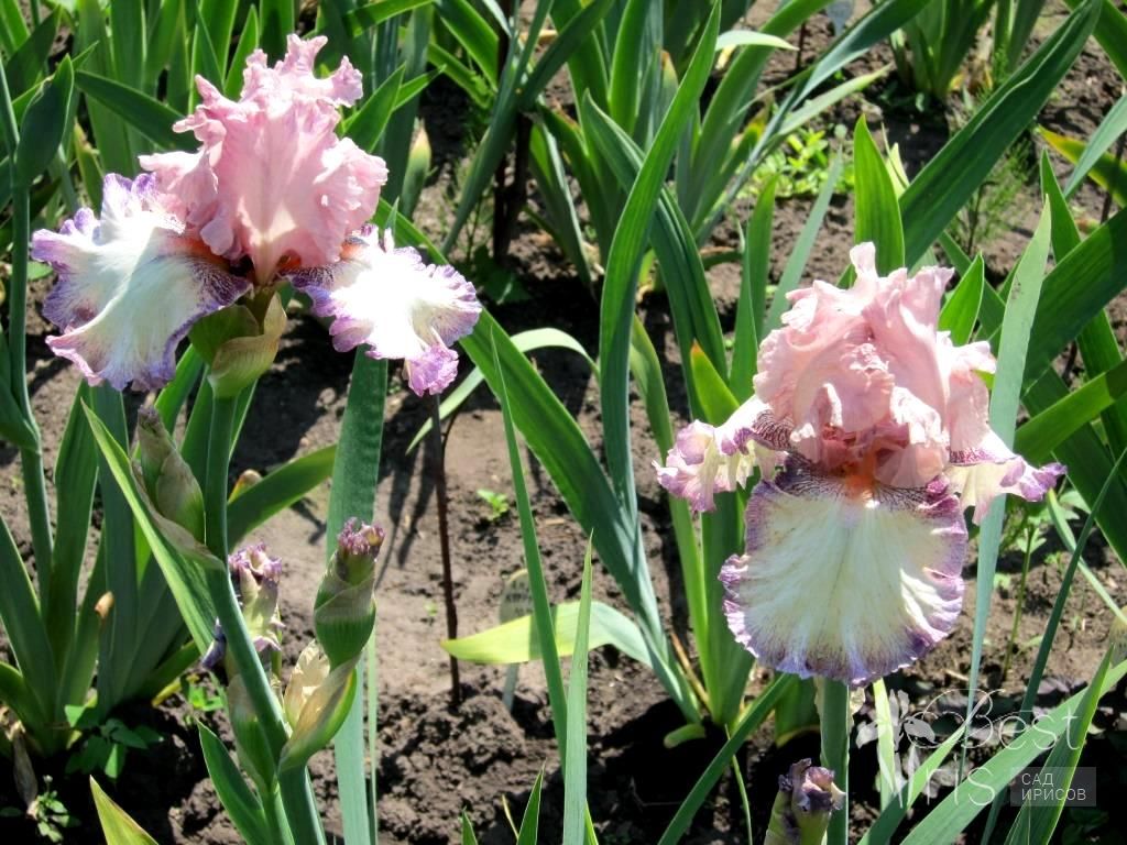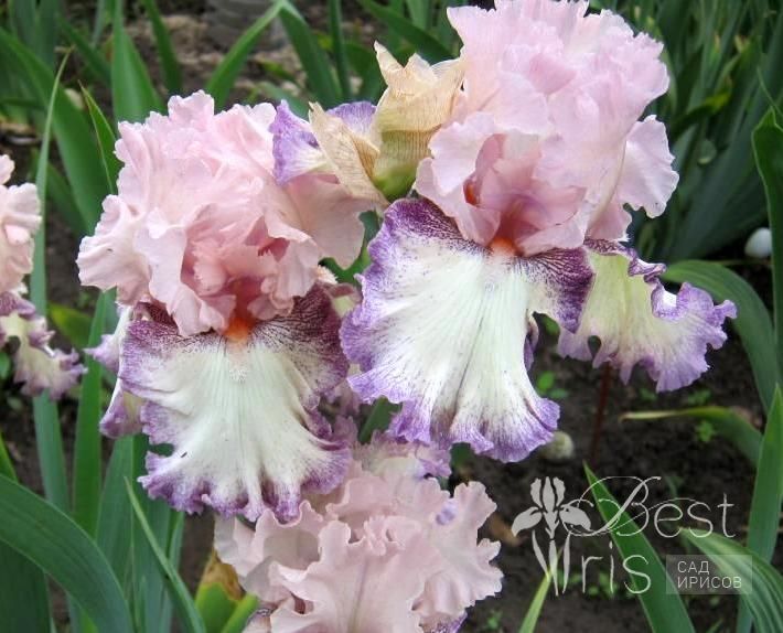 Описание:Aitken’09, E, 97, HM’11, AM’13. Нежно розовые стандарты, белые фолы с каймой из тонких пурпурных точек и черточек. Необычайно женственный цветок!