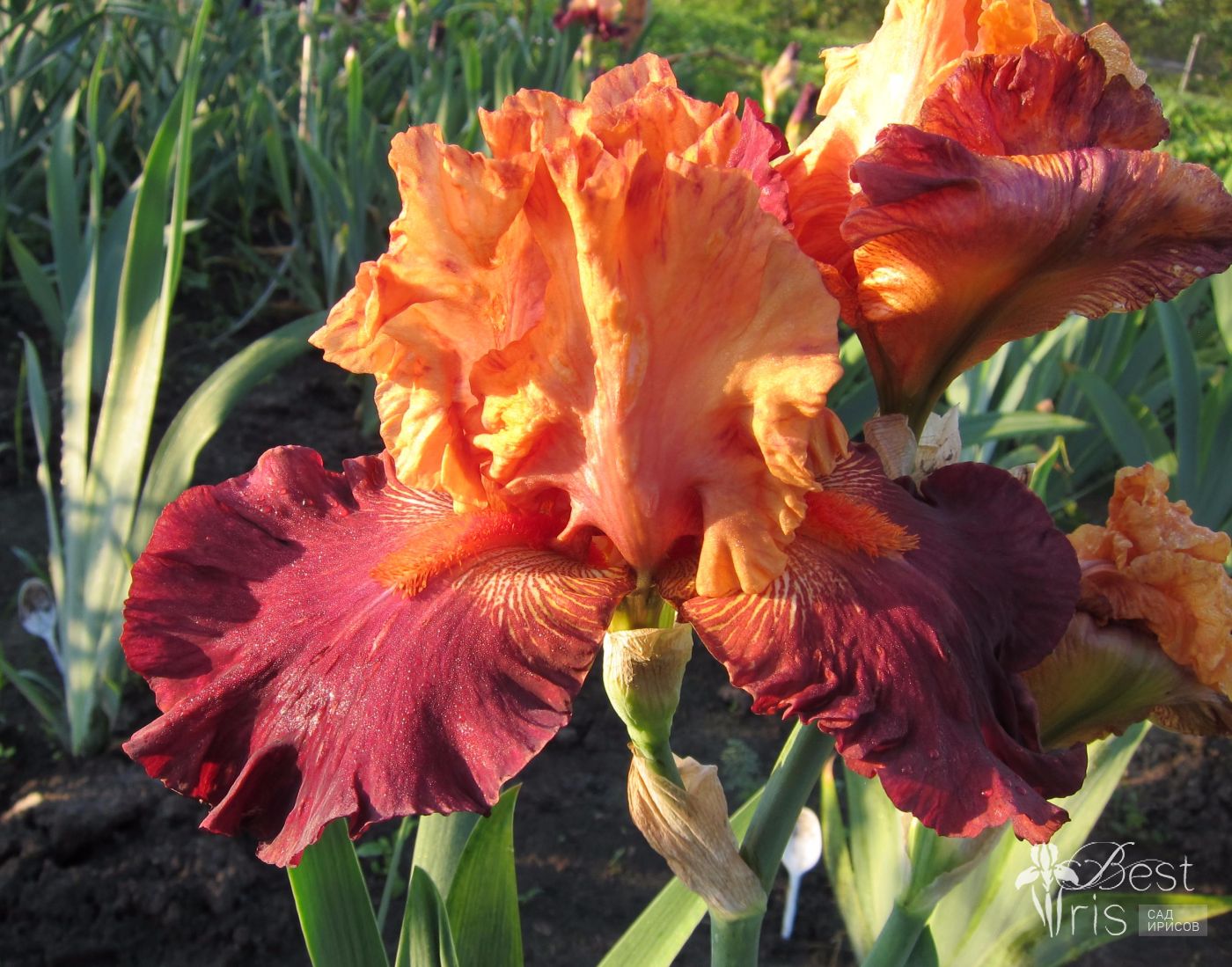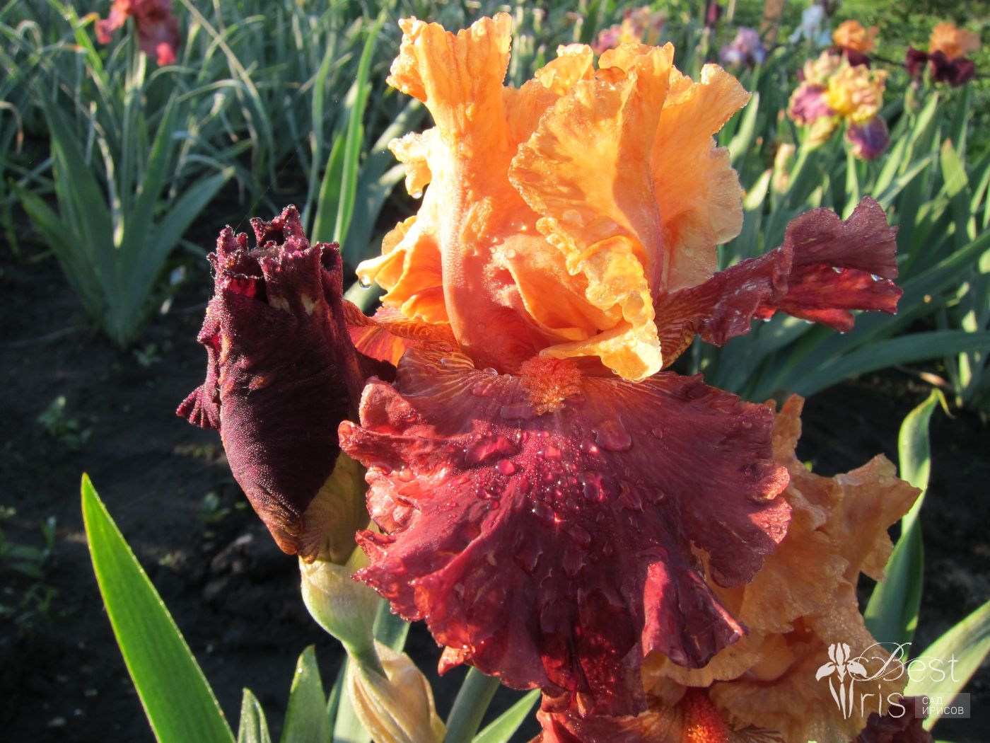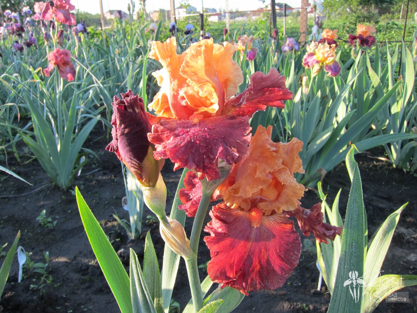 Описание:Blyth’03, ML, 97. Абрикосовые стандарты, розово-теракотовые фолы со сливовыми плечами. Бородки очень большие, мандариновые. Огромные цветы, прекрасное ветвление, хорошее размножение!