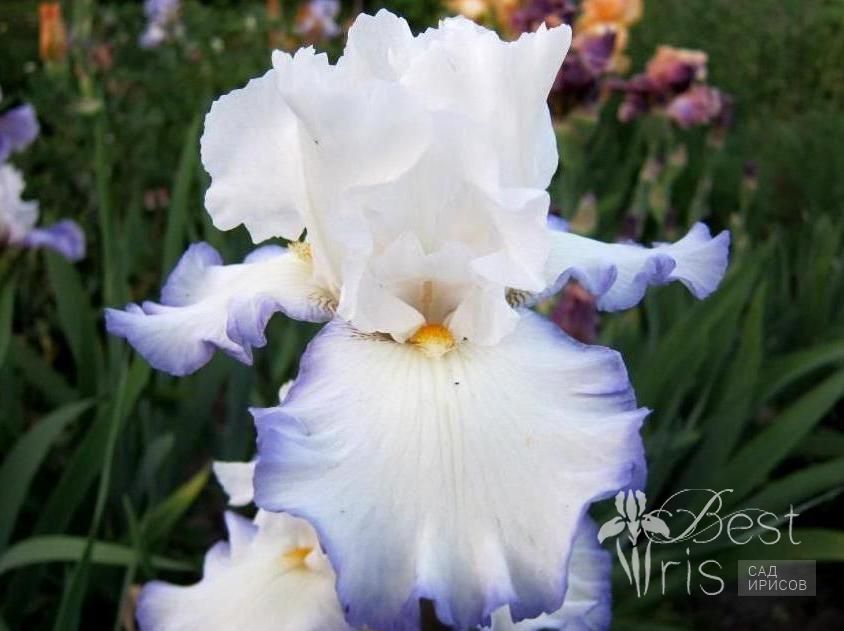 Описание:Kerr’00, ML, 81, HM’02, AM’04, Franklin Cook Memorial Cup'01,'05, WM’06, DM’07. Чисто белый с узкими темно-синими краями на фолах. Приглушённые оранжевые бородки добавляют тонкое тепло. Цветок источает тихое и неотразимое очарование!