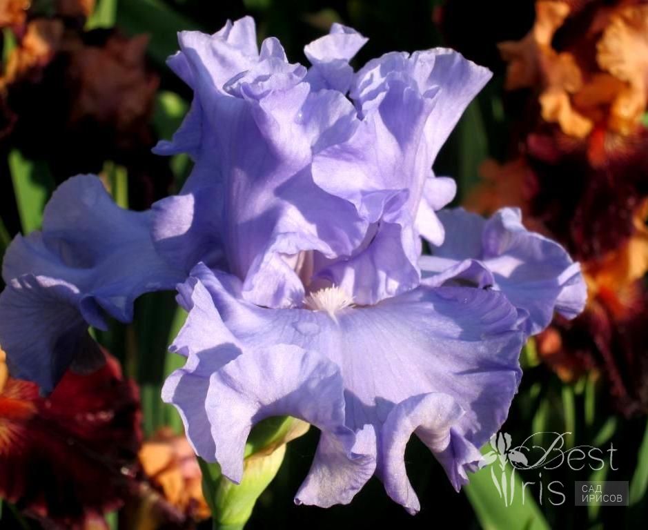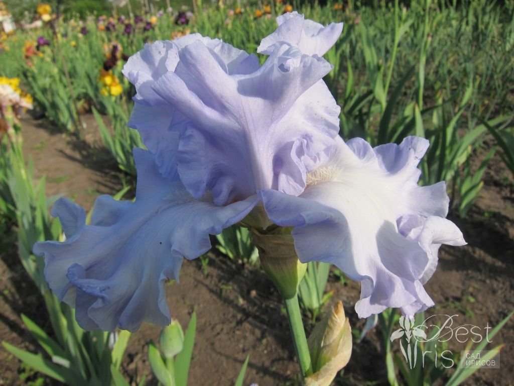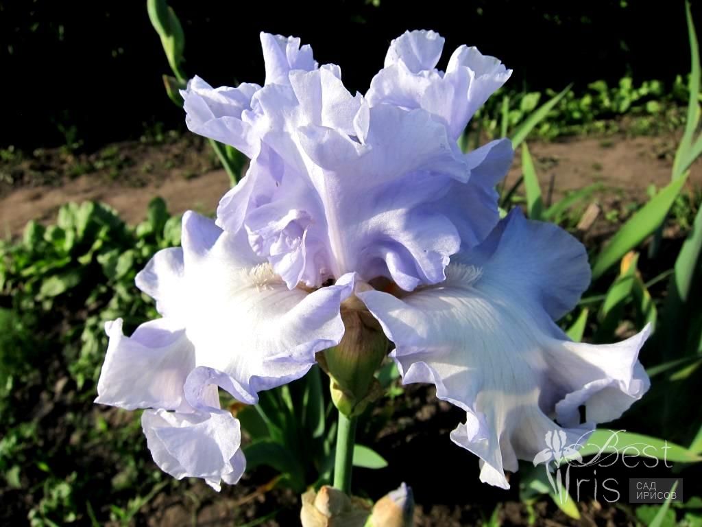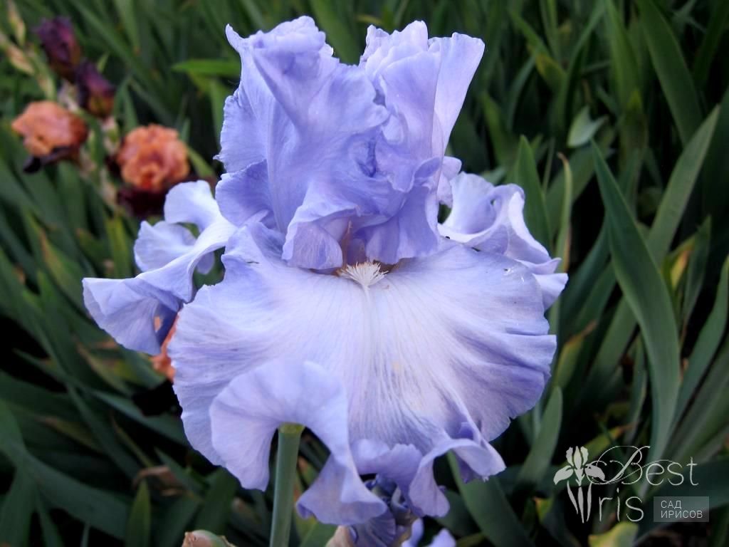 Описание:Johnson’14, L, 91, HM'18. Ясные светло-голубые стандарты. Фолы немного светлее с бело-голубыми бородками. Крупные цветки на мощных стеблях с большим количеством волнообразных оборок!